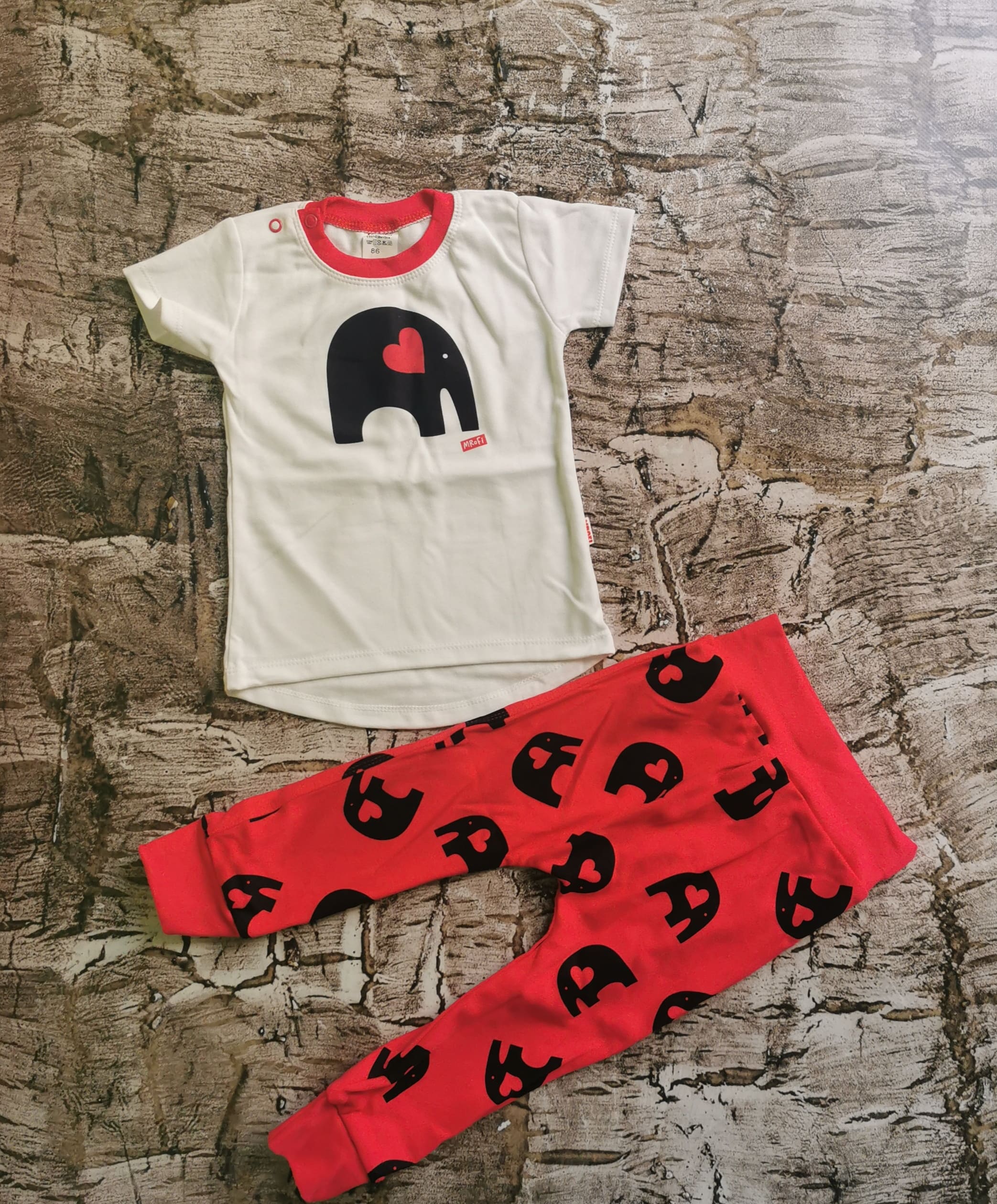 Bawełniany komplecik bluzeczka i spodenki z motywem słonika, 100 bawełna, polski producent Mrofi.