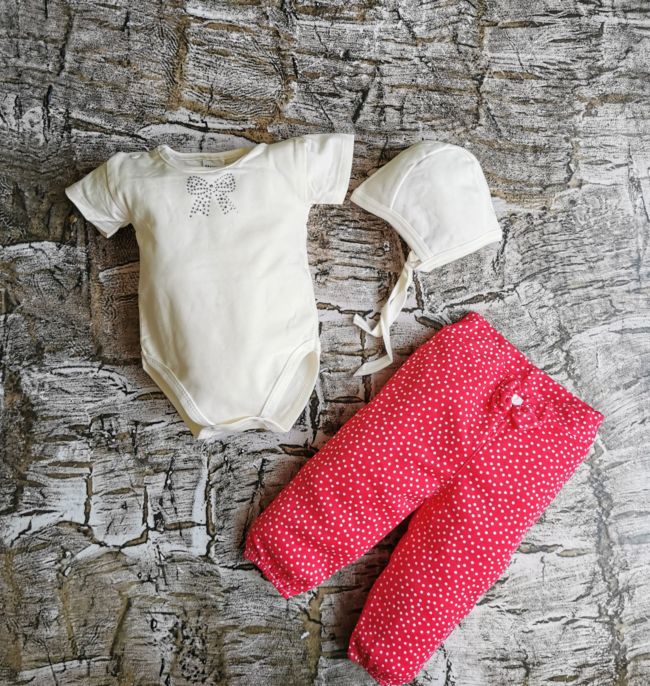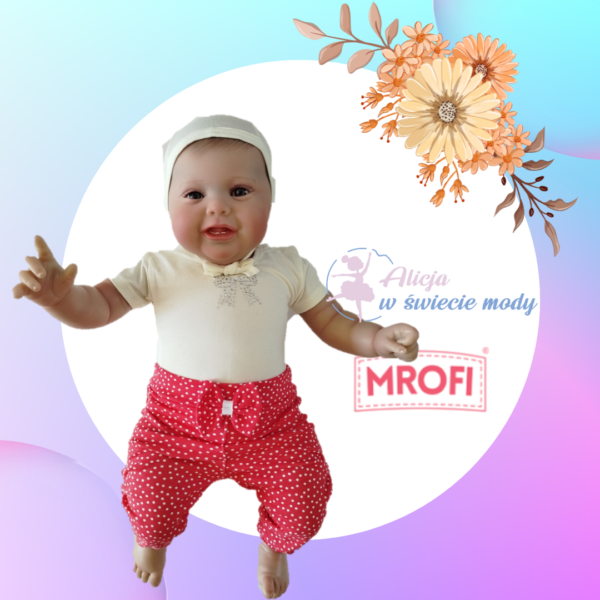 Miękki i wygodny komplecik z motywem kokardki . Skład body 95% bawełna, 5% elastan. Spodnie 100% bawełna. Polski producent Mrofi.