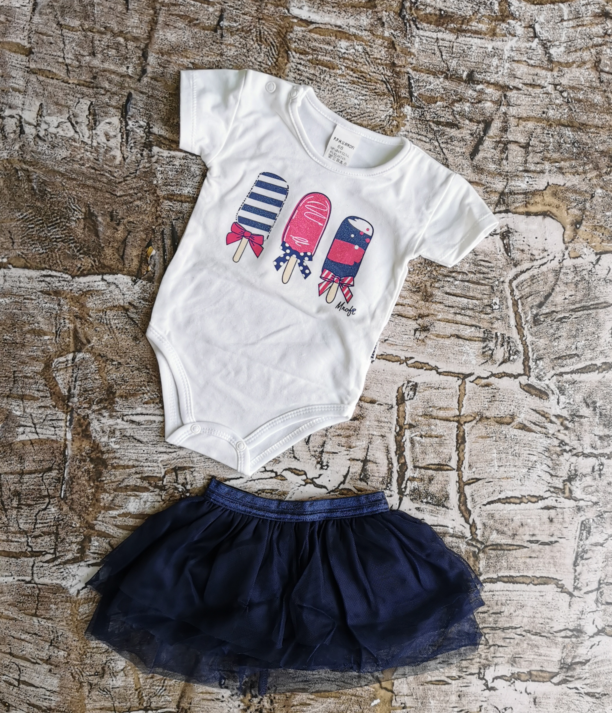 Miękki i wygodny komplecik z kokardką i spódniczką. Skład 95% bawełna i 5% elastan,  Polski producent Mrofi.