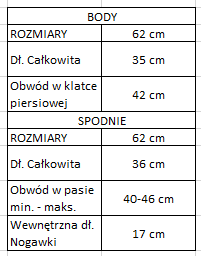 | Rozmiar | Rozmiar 62 cm |