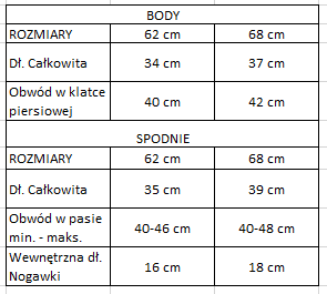 | Rozmiar | Rozmiar 62 cm, Rozmiar 68 cm |