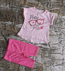 Miękki i wygodny komplecik z motywem kwiatków. Skład 95% bawełna i 5% elastan, Polski producent Mrofi.