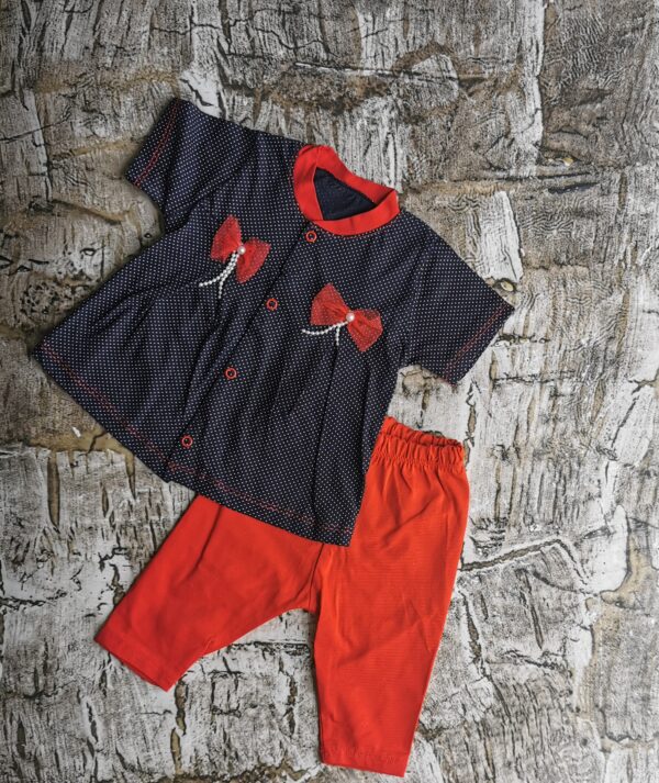 Miękki i wygodny letni komplecik z motywem kokardek. Producent turecki.