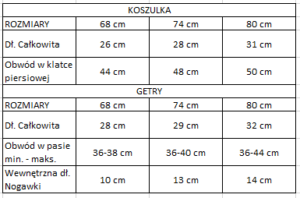 | Rozmiar | Rozmiar 68 cm, Rozmiar 74 cm |