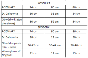 | Rozmiar | Rozmiar 74 cm, Rozmiar 80 cm |