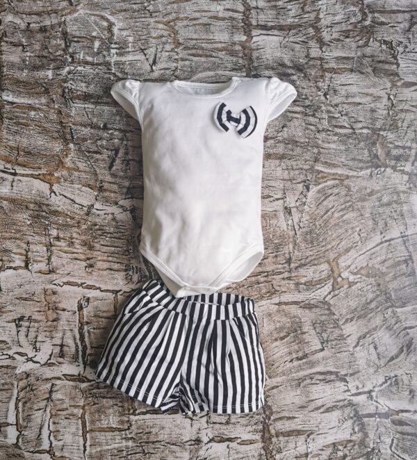 Miękki i wygodny komplecik body, spodenki na upalne dni. Skład body: 95% bawełna 5% elastan , spodenki 100% bawełna. Polski producent Mrofi.