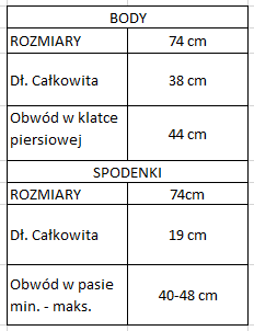 | Rozmiar | Rozmiar 74 cm |