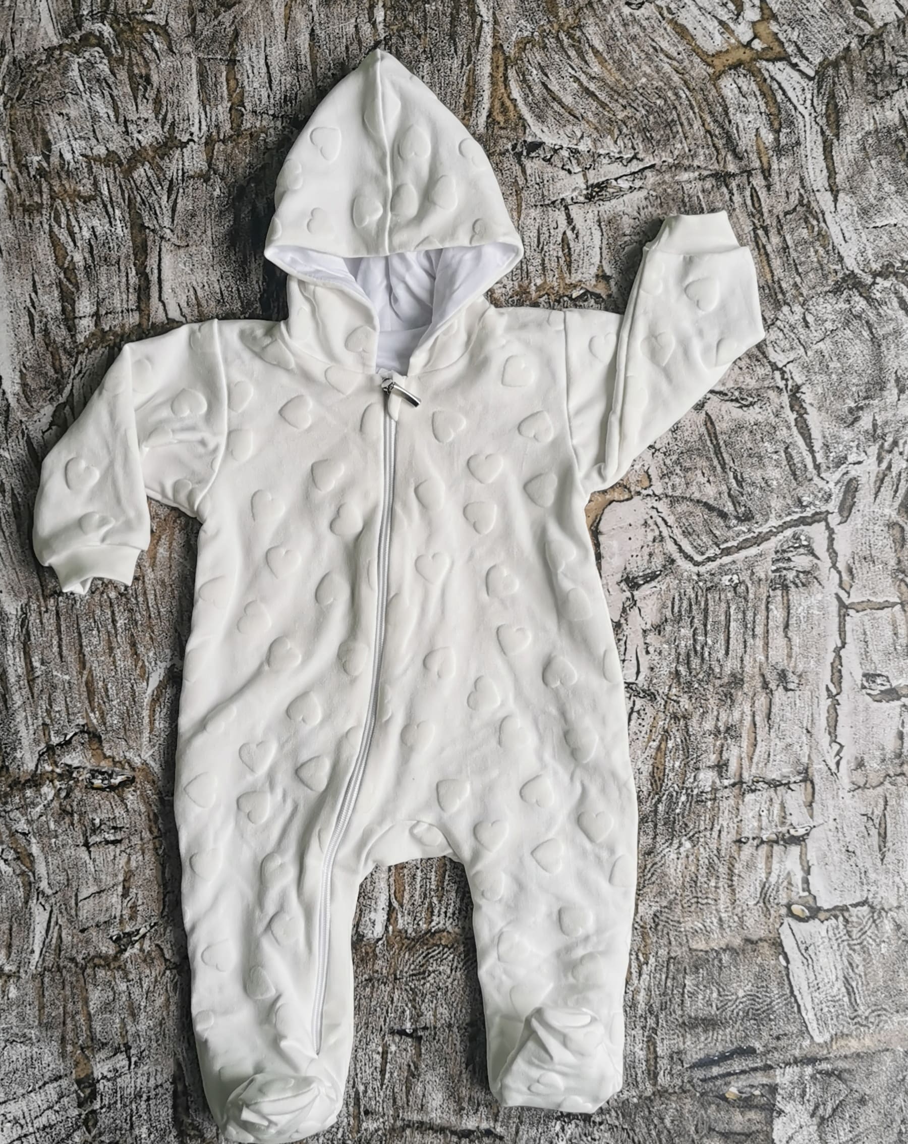 Pajac wiosenno-jesienny, biały w serduszka – Mrofi
