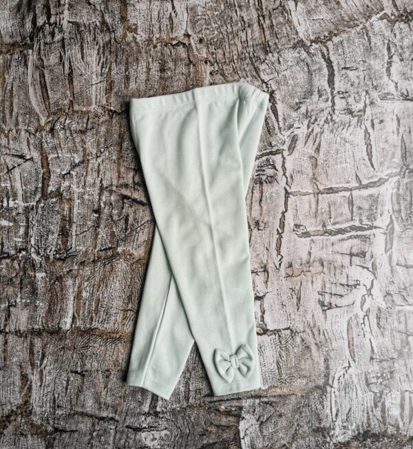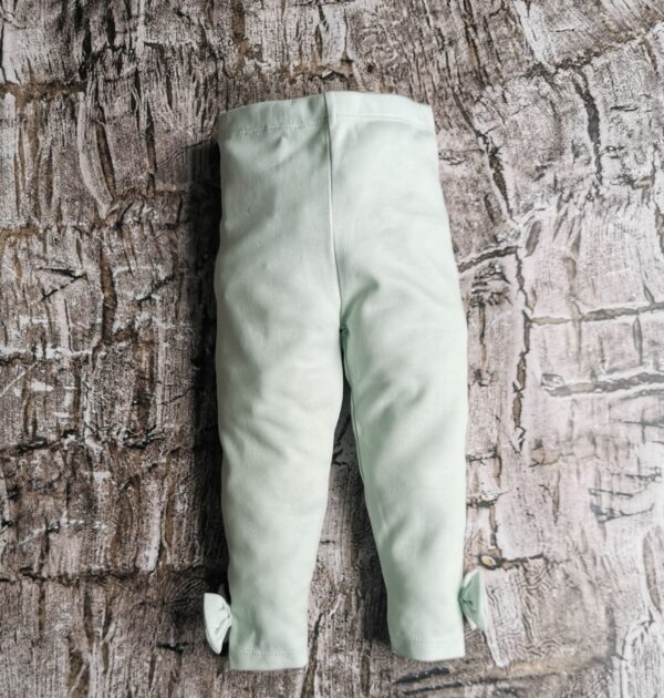 Miękkie i wygodne leginsy dla dziewczynki z kokardką przy nogawkach. Wykonane przez polskiego producenta Mrofi. Skład materiału: 95% bawełna, 5% elastan.