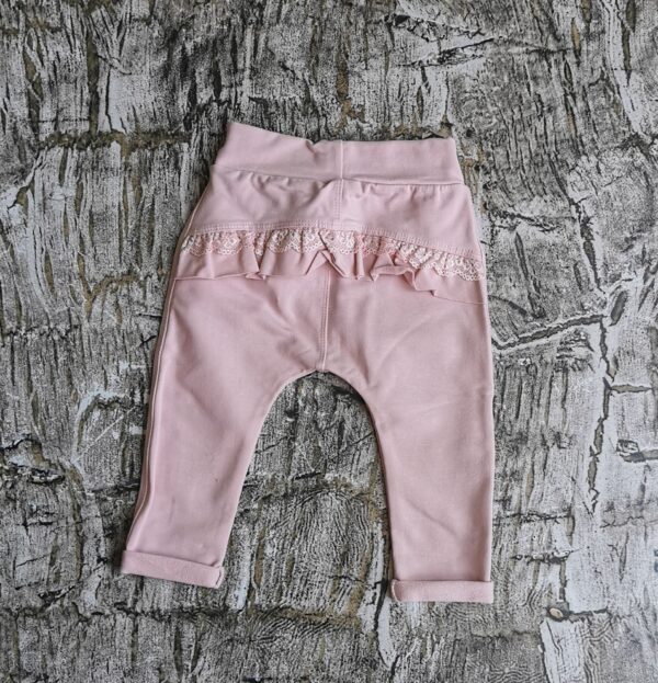 Spodnie Mia z falbanką jasny pudrowy róż- Mrofi