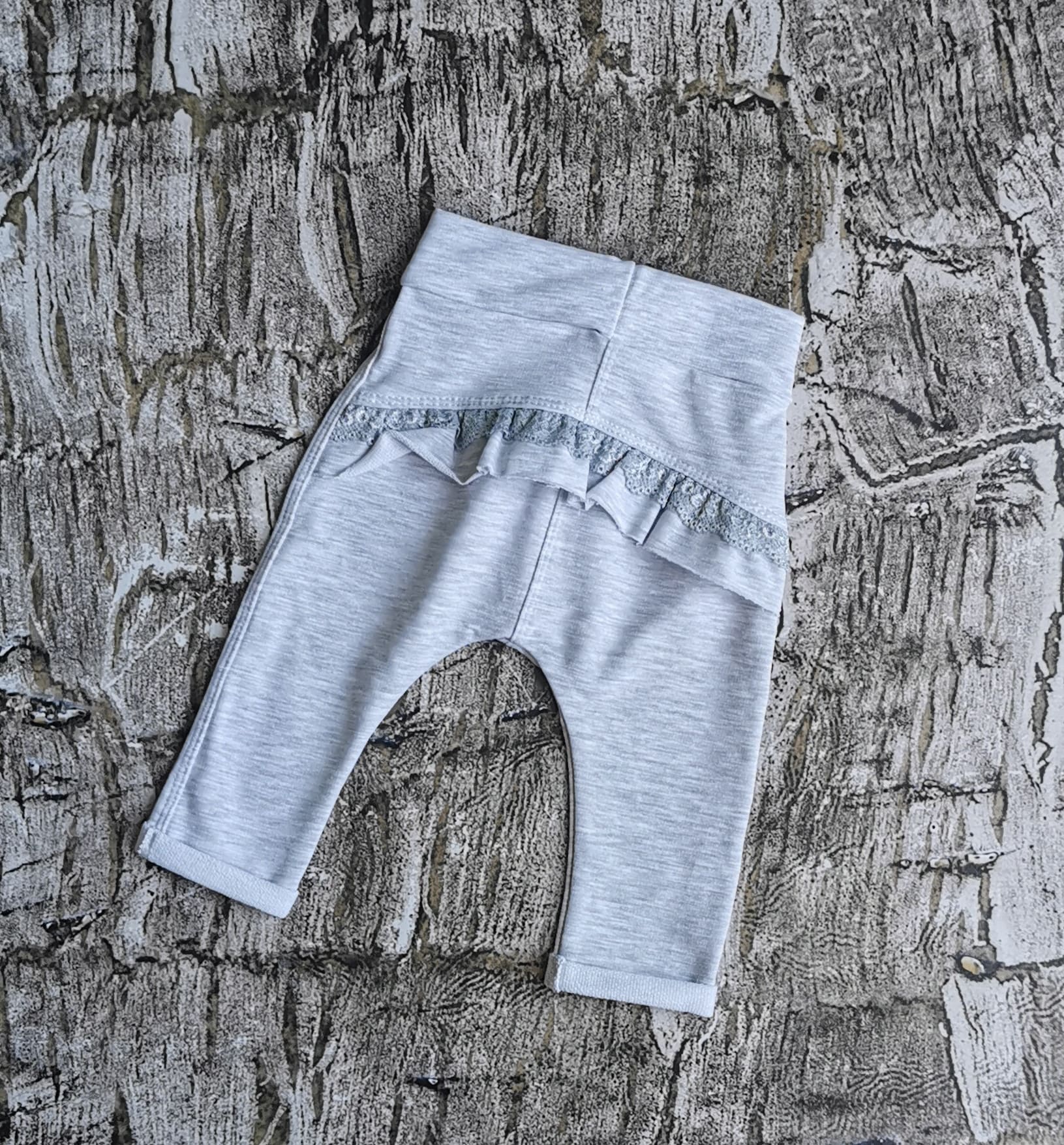 Spodnie Mia z falbanką jasny szary melanż- Mrofi