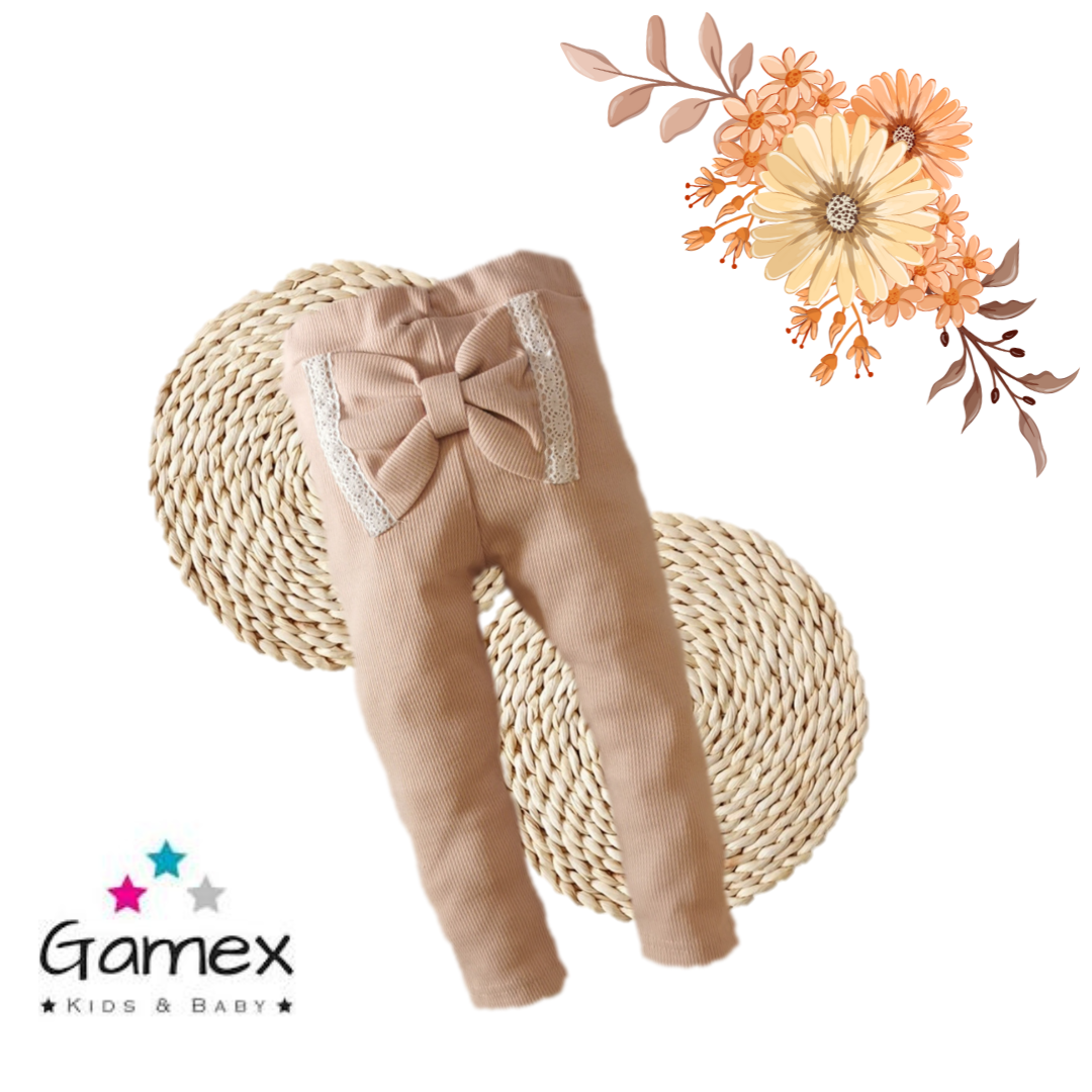Spodnie prążek kokarda pudrowy róż- Gamex