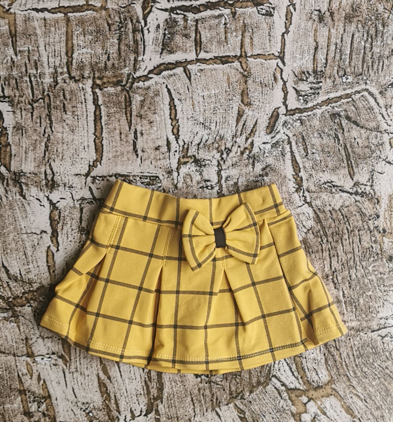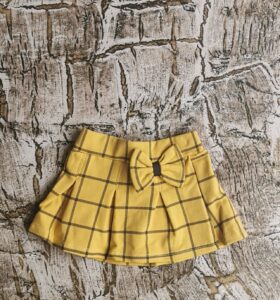 Elegancka musztardowa spódniczka w kratę. Skład 95% bawełna i 5% elastan, Polski producent Mrofi.