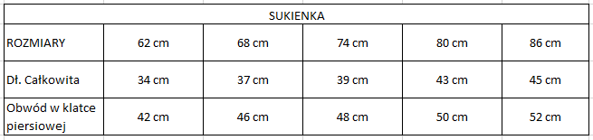 | Rozmiar | Rozmiar 62 cm, Rozmiar 68 cm, Rozmiar 74 cm, Rozmiar 80 cm, Rozmiar 86 cm |