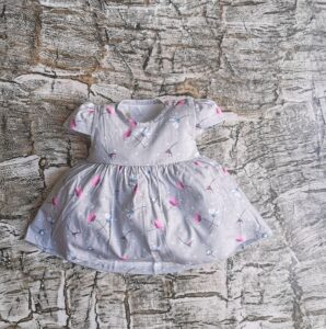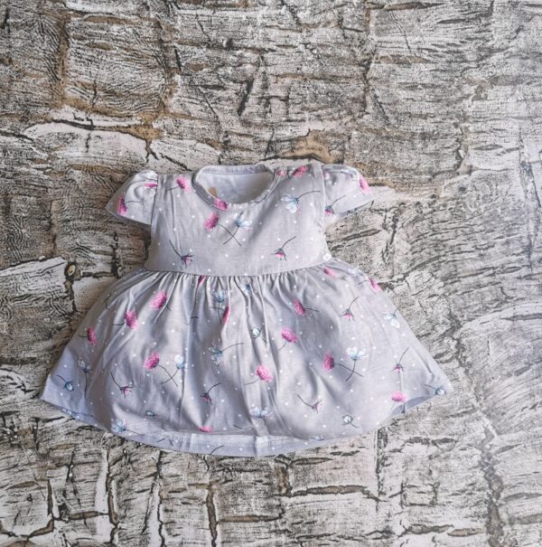 Szara sukienka z kolorowymi kwiatami. Na ramieniu zapinana na napki co ułatwia jej zakładanie i zdejmowanie. Skład materiału: 100% bawełna . Polski producent Mrofi.
