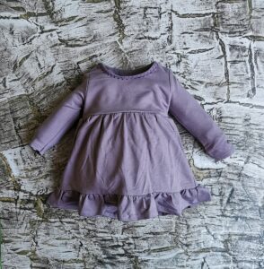 Elegancka jagodowa sukienka z wzorkiem Na ramionkach zapinana na napki co ułatwia jej zakładanie i zdejmowanie. Skład materiału: 95% bawełna 5% elastan . Polski producent Mrofi.