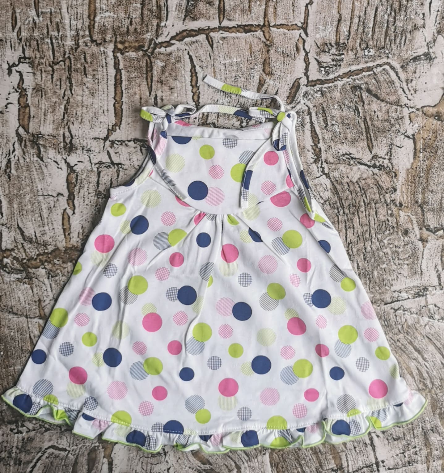 Letnia sukieneczka w kolorowe groszki. Wiązana na ramionach. Skład materiału 100 % bawełna . Polski producent Mrofi.